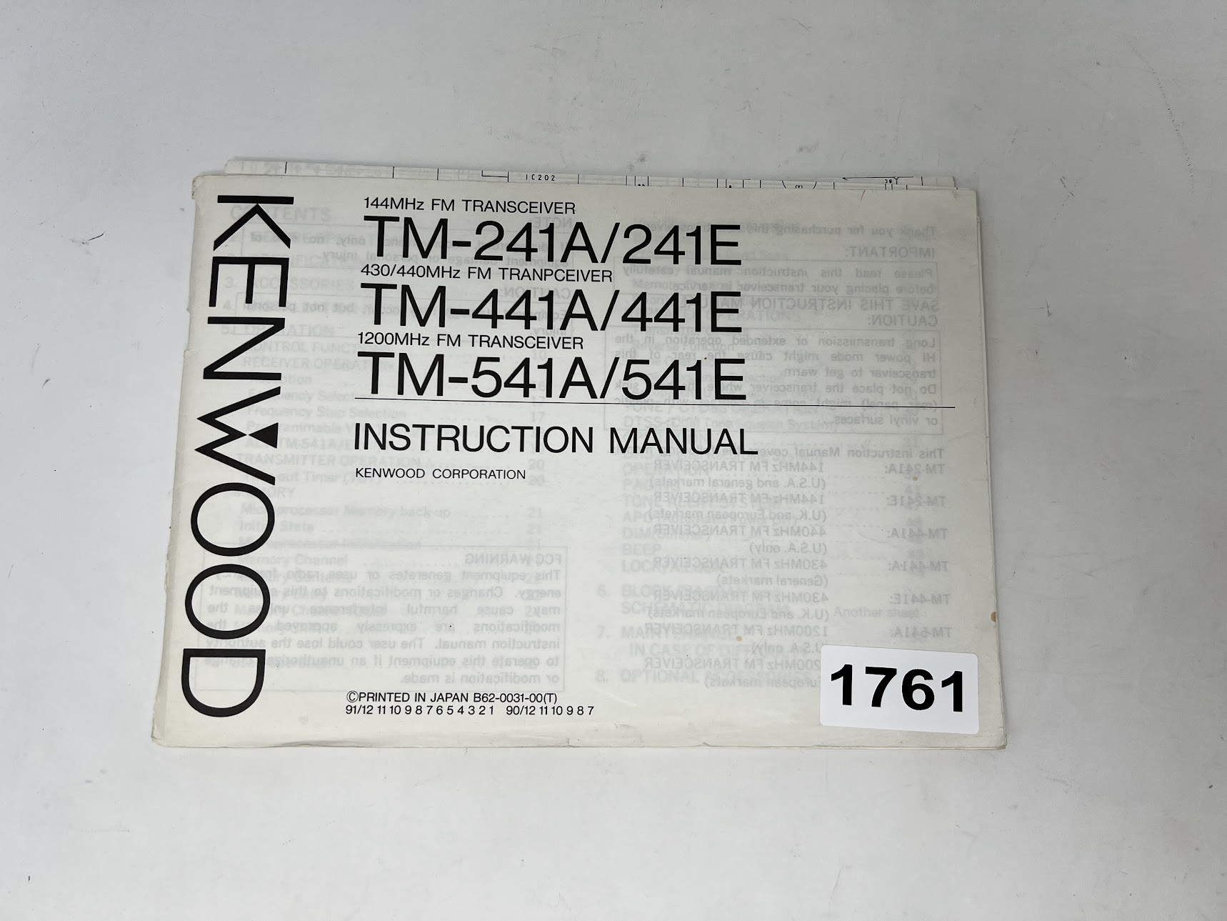 KENWOOD Instruction Manual for TM-241A/241E Transceiver