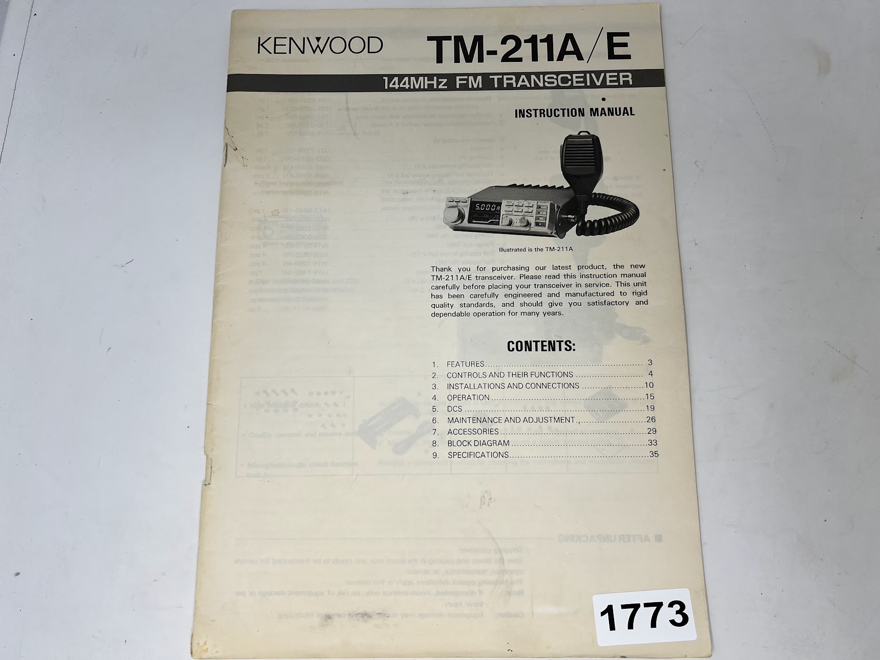 KENWOOD TM-211A/E Transceiver Instruction Manual