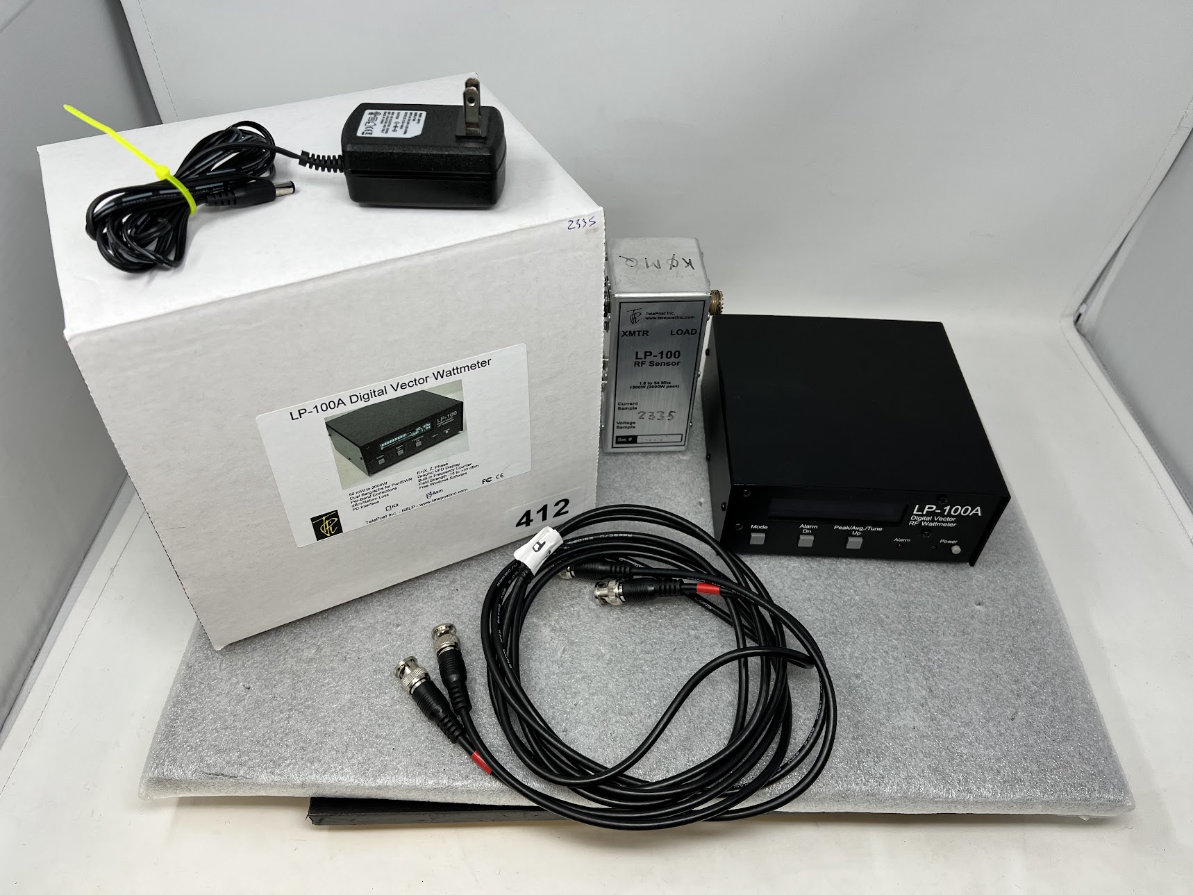 Includes: LP-100A Wattmeter, Original Box, LP-100 RF Sensor, Cables, Power Supply Cable.