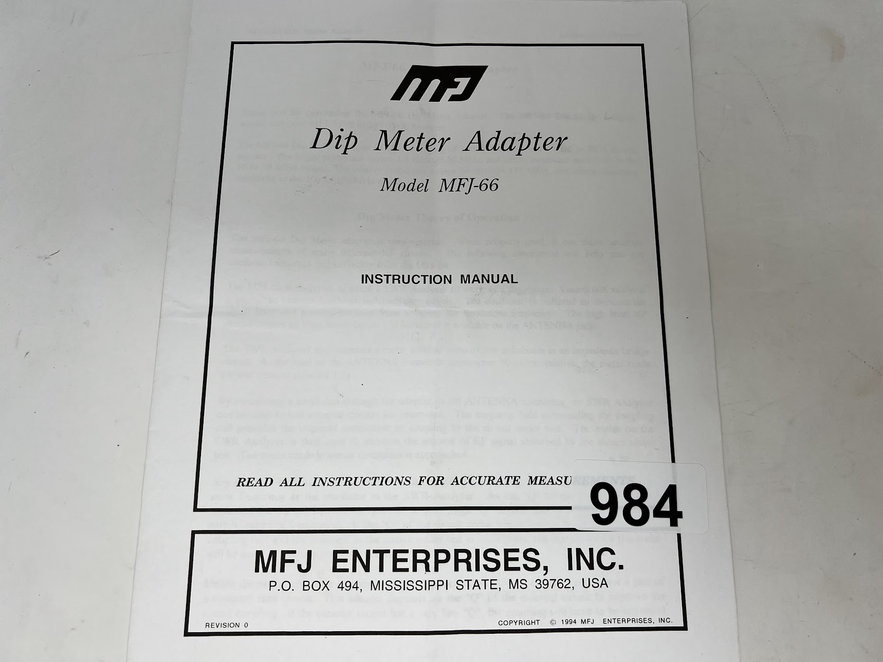 MFJ-66 Dip Meter Adapter – Instruction Manual