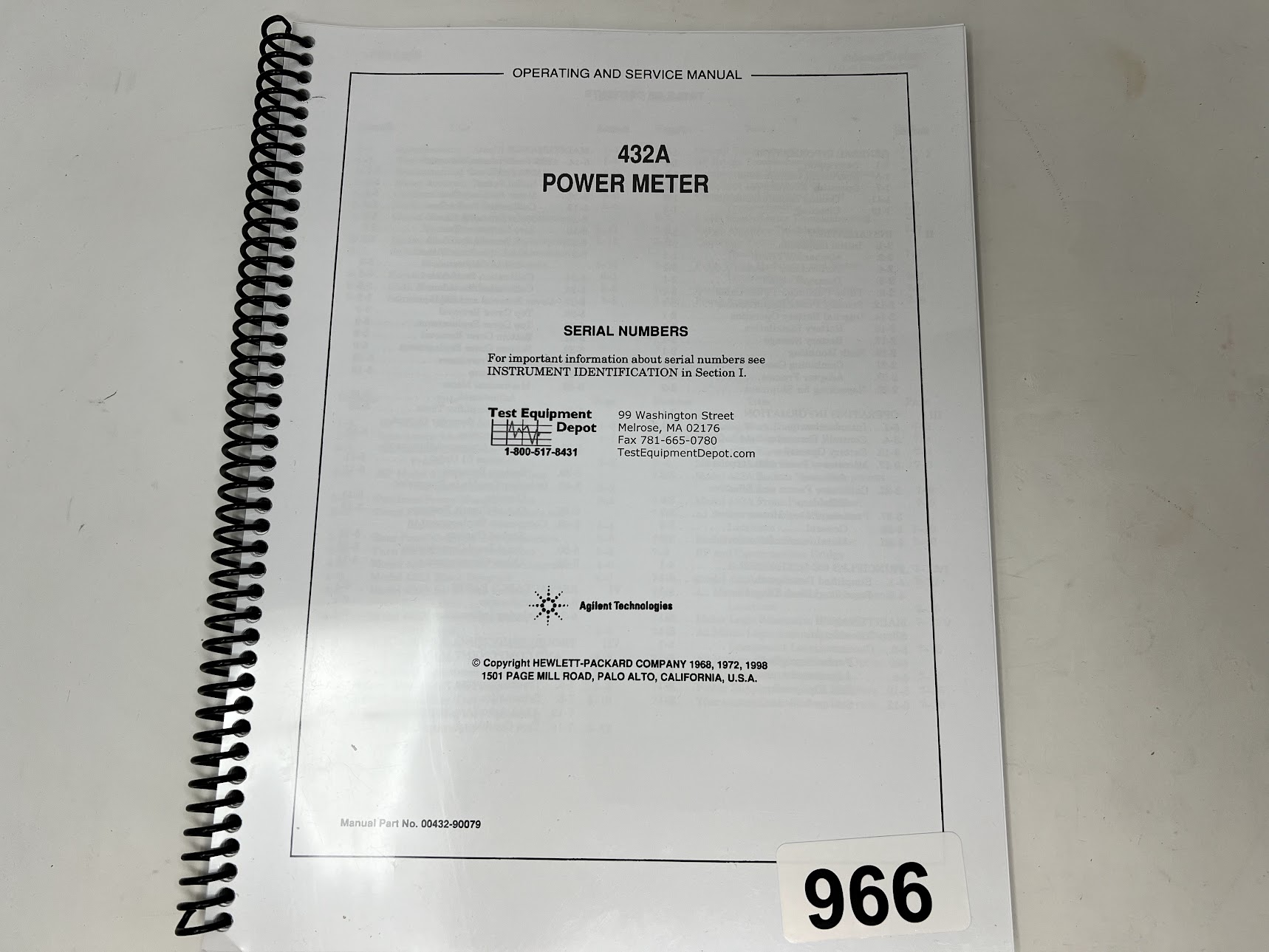 Operating & Service manual for the 432A Power Meter
